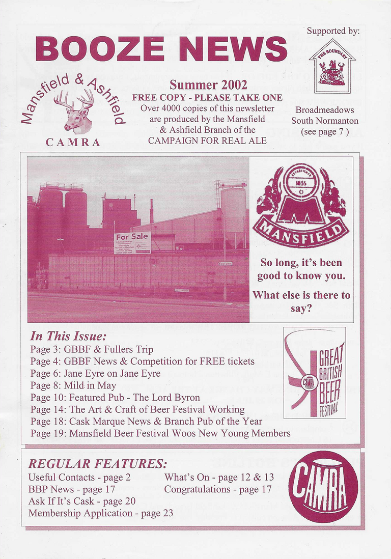 Summer 2002 edition of Booze News archived Friday 14 November 2025 The Summer 2002 edition of Booze News has been archived and is available to download from the Newsletter page or by clicking the image below. Summer 2002
