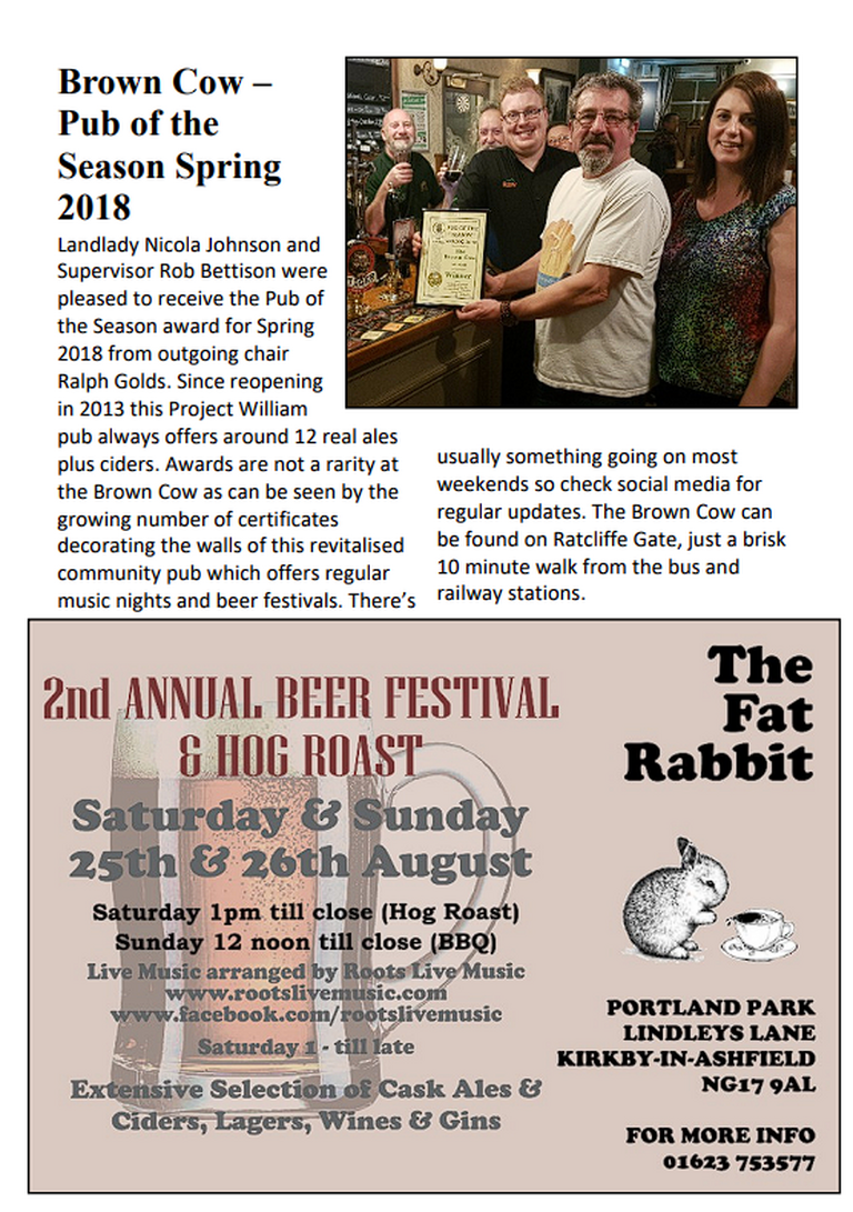 Spring 2018 Pub of the Season - Brown Cow, Mansfield