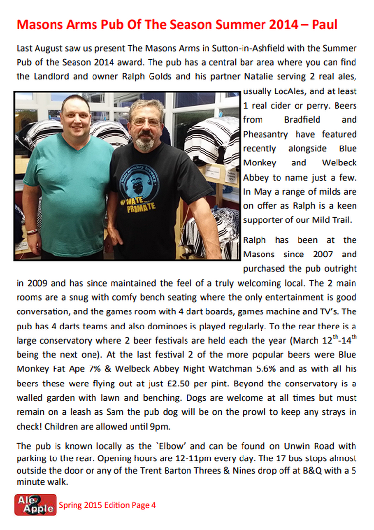 Summer 2014 Pub of the Season - Masons Arms, Sutton-in-Ashfield