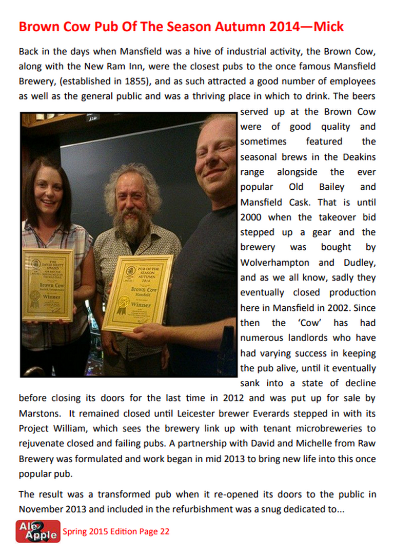 2014 Nottinghamshire Pub of the Year (Ale & Apple Autumn/Winter 2014
