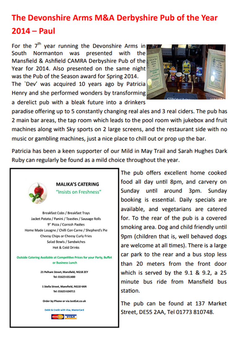 Derbyshire Pub of the Year 2014 - Devonshire Arms, South Normanton