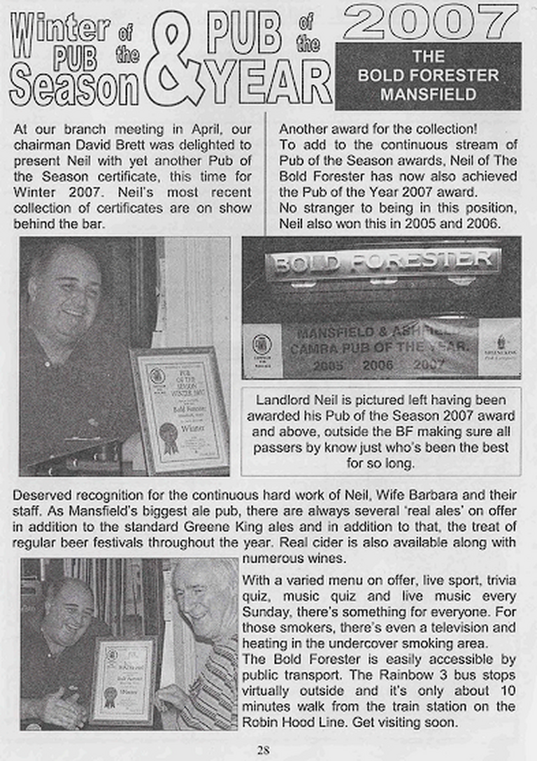 Nottinghamshire Pub of the Year 2007 - Bold Forester, Mansfield
