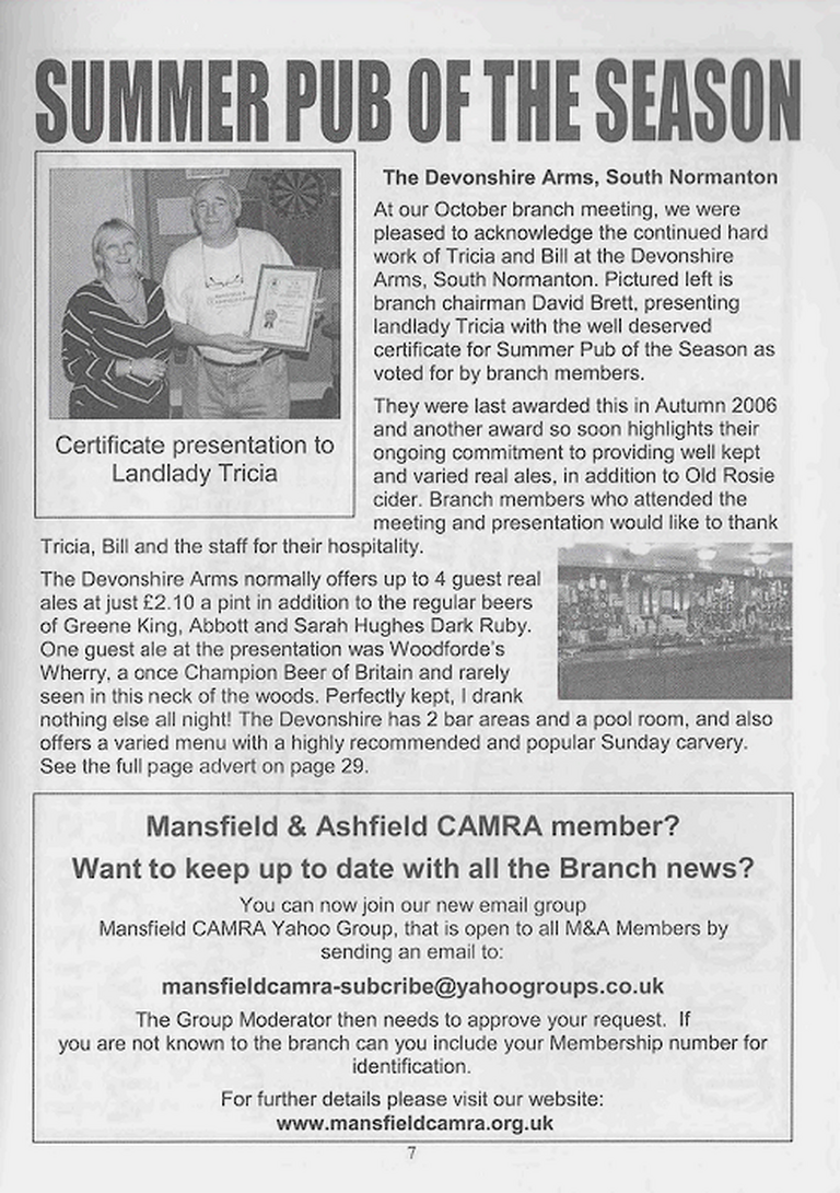 Summer 2007 Pub of the Season - Devonshire Arms, South Normanton