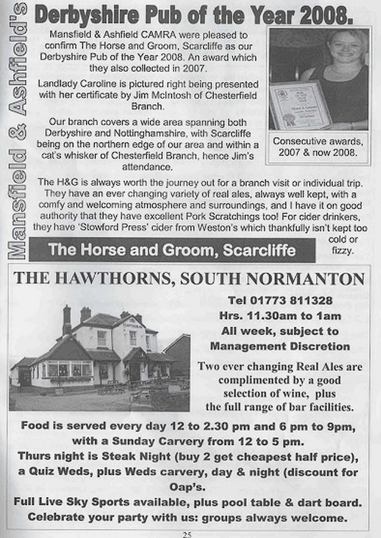 Derbyshire Pub of the Year 2008 - Horse & Groom, Scarcliffe