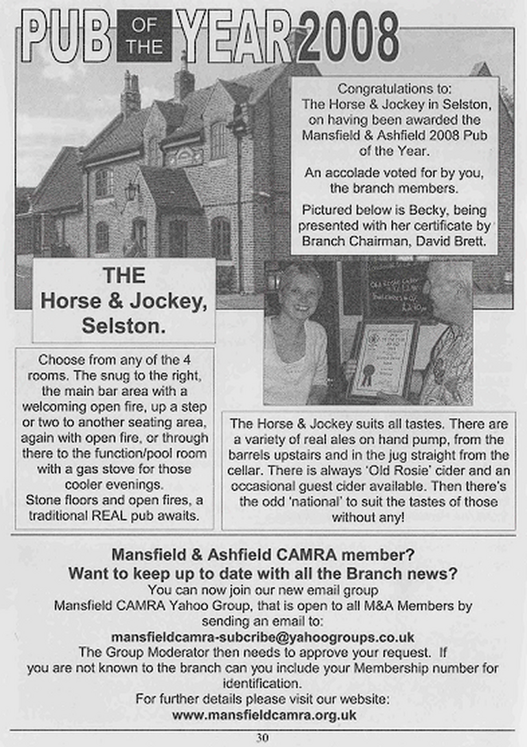Nottinghamshire Pub of the Year 2008 - Horse & Jockey, Selston