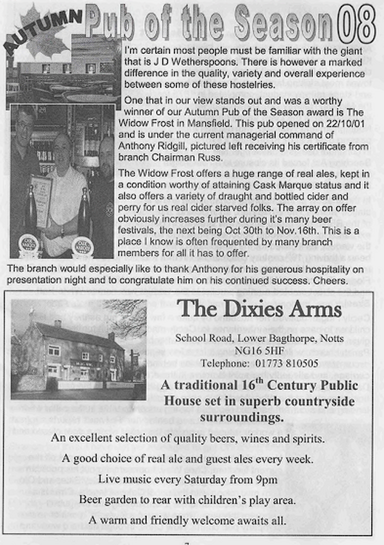 Autumn 2008 Pub of the Season - Widow Frost, Mansfield