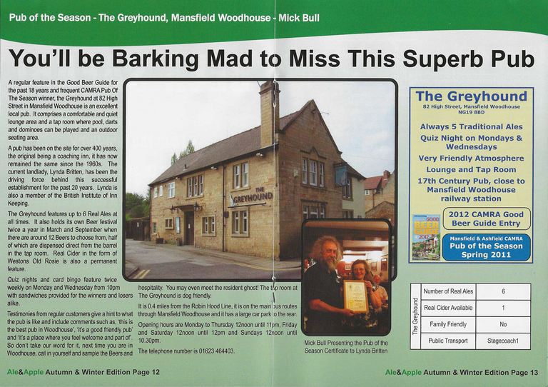Spring 2011 Pub of the Season - Greyhound Inn, Mansfield Woodhouse