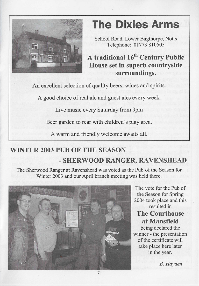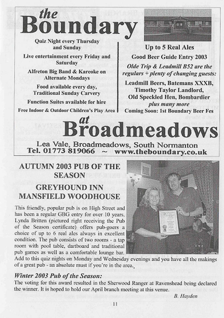 Winter 2003 Pub of the Season - Sherwood Ranger, Ravenshead