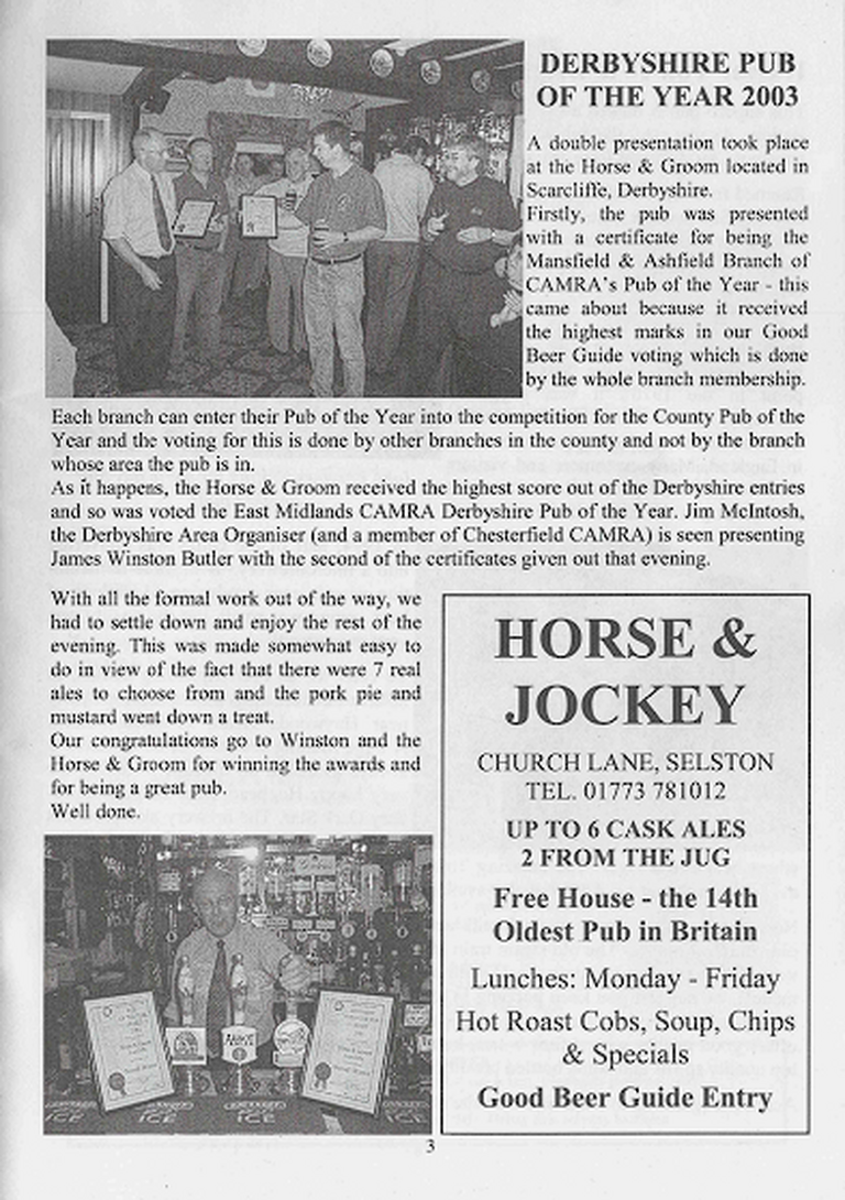 Derbyshire Pub of the Year 2003 - Horse & Groom, Scarcliffe