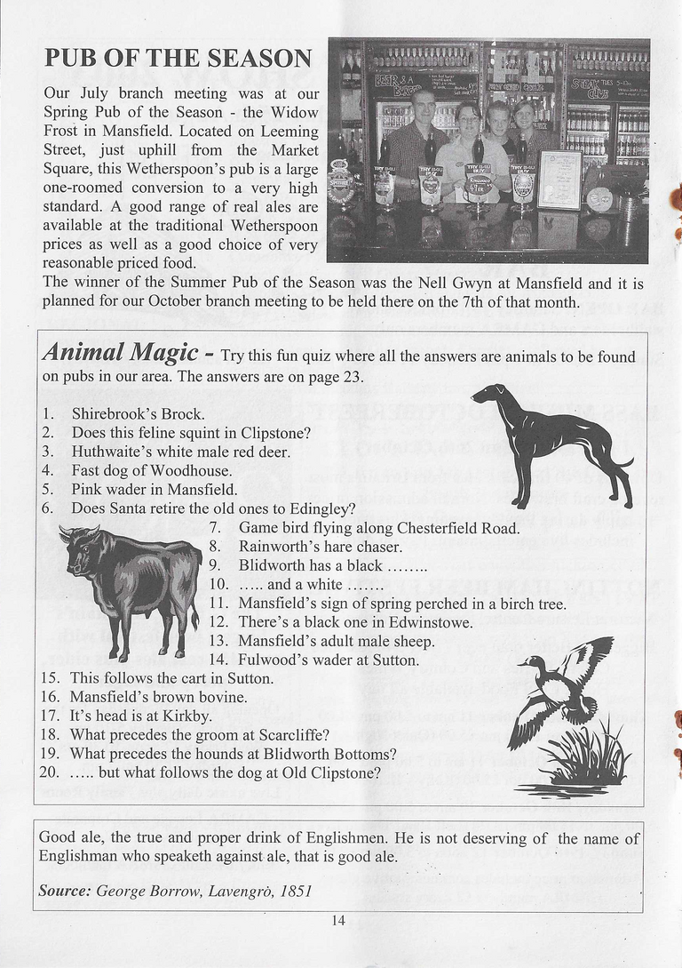 Spring 2003 Pub of the Season - Widow Frost, Mansfield